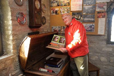 Archiv für Brauchtumspflege im Engelbertturm vom Rathaus Bensberg auch Karnevalsmuseum Bensberg genannt. In seiner nicht erlahmenden Art auf der Suche nach historischen Quellen unserer Vergangenheit hat der inzwischen weit bekannte Heimatforscher und Buchautor zahlreicher Bücher, Willi Fritzen, eine einzigartige private Sammlung über das Brauchtum und den Karneval zusammengetragen. In über 50jähriger Kleinarbeit hat er unermüdlich Dokumente, Fotos, Liederhefte, alte Orden und vieles mehr gesammelt. Durch diese private Initiative konnte so eine zeitgeschichtlich bedeutsame Sammlung entstehen, um die ihn so manche Brauchtumsfreunde in anderen Städten beneiden. Auf Grund seines Forschungsdrangs gelang es ihm die Wurzels des Karnevals seiner Heimatstadt zu ermitteln. Der Beginn eines vereinsmäßig betriebenen Karnevals, und die Gründung der 1. Karnevalsgesellschaft in Bensberg fand im November 1873 statt. (Hierzu gibt es zahlreiche Belege) Als die Bensberger im Jahre 1979 > 75 Jahre Bensberger Karnevalszug <. feierten, überraschte er die Bürgerschaft mit zahlreichen Ausstellungsstücken anläßlich einer vielbesuchten Ausstellung in den Geschäftsräumen der heutigen Bensberger Bank. Im Jahre 1990 errichtete die KG Grosse Bensberger, unter ihrem damaligen Präsidenten Paul Falk, und unter dessen Federführung, im Engelbertturm ein Museum. Sein Name: "Archiv für Brauchtumspflege" Da der Großteil der dort gezeigten Exponaten die Bensberger Karnevalstradition heraus stellen trägt das Museum auch die Bezeichnung > Karnevalsmuseum <. Doch dies wäre zu kurz gegriffen, denn Brauchtumspflege beinhaltet nicht nur Karneval. Unter heimisches Brauchtum versteht man auch das beliebte Schörreskarrenrennen, Maifeiern, Pfingstsingen, oder Geisterzug, um nur einige zu nennen. Im Ordner: > Karnevalsmuseum 2 <. ( in dieser Homepage ) wurden bereits Formen dieses alten Brauchtums behandelt. So z.B. Mittelalterliche Fastnacht Heischumzüge zu Fastnacht Rügebräuche Geisterzüge Narrenvater Till Eulenspiegel Im Jahre 1993 übernahm das Senatsmitglied Willi Fritzen, die beiden Turmstuben im Engelbertturm um darin das "Archiv für Brauchtumspflege" einzurichten. Den Hauptteil der dort ausgestellten Ausstellungsstücke und Exponate sind vorerst noch eine Leihgabe aus der reichhaltigen Sammlung von Willi Fritzen, die später in einer Dauerleihgabe umgewandelt werden soll. Plakate, alte Fotos, Liederhefte, Sessionsbücher, Eintrittskarten, Zeitungsausschnitte etc. belegen eine bewegte Bensberger Karnevalsgeschichte. Karnevalsuniformen, von Schaufensterpuppen zur Schau gestellt, zeigen Original-Kleidung vergangener Zeiten. Desweiteren zeigt das Archiv Narrenkappen, wie Elferrats-, Komitee-, und Präsidentenmützen (die ältesten stammen aus dem Jahre 1904) Ferner Pokale, Präsidentenorden-, ketten-, zepter-, Mitglieder und Protokollbücher. Neben Tischfahnen, Gästebücher, zeigt das Archiv eine reichhaltige Sammlung alter und neuer Karnevalsorden, (der älteste Orden ist der 1. Kölner Faschingsorden von 1838) Diese Aufzählung kann noch beliebig erweitert werden. Aufgrund seiner Verdienste um die Brauchtumspflege ernannte das Festkomitee Bensberger Karneval e.V. dass oberste Gremium aller Bensberger Karnvals-gesellschaften Herrn Willi Fritzen, im Jahre 2005 zum: