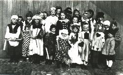 Das Verbot karnevalistischer Aktivitäten in den Jahren 1919 bis 1926 sollte Ausdruck nationaler Trauer sein. Machen wir nun einen Sprung ins Jahr 1927. Statt eines großen Rosenmontagszuges gab es im Jahre 1927 in Köln nur eine bescheidene "Bunte Kappenfahrt" Erst danach ab dem Jahre 1928 gab es in Bensberg wieder einen Karnevalszug, den ersten Zug nach dem Kriege. Der Leitgedanke des Zuges in Bensberg (heute würde man Zugmotto sagen ) lautete "Leev Heimat". Aber auch sonst hatte sich bedingt durch die lange Zwangspause in Bensberg sich einiges verändert. Mehrere Gesellschaften die noch vor dem Krieg in Bensberg aktiv waren, hatten sich lautlos aufgelöst. Nur die KG "Hinterpommern" hatte die lange Durststrecke überlebt, und trat wieder, allerdings mit einem sehr veraltertem Mitgliederbestand an. Aber es gab auch eine Neugründung. Unter dem Namen KG "Narrenzunft" hatte sich 1927 eine neue Karnevalsgesellschaft gegründet. Beide Gesellschaften versuchten nun den Bensberger Karneval wieder neu zu beleben. In den Jahren 1928 bis 1930 klappte dies auch vorzüglich. Doch dann traten unverhofft andere, neue Schwierigkeiten auf, denn nun war es die "Weltwirtschaftskrise" die den Vereinen das Überleben schwer machte. Durch die Schließung von Grubenbetrieben wie die Grube Berzelius, Grube Weiß, Grube Lüderich um nur einige zu nennen, waren viele hundert Menschen arbeitslos geworden. Die Gemeinde Bensberg versuchte durch Notstandsarbeiten wie durch Straßenbau neue Arbeitsplätze zu schaffen. Allein die Bergarbeiterschaft hatte monatlich 220 000.- RM unter die Geschäftsleute gebracht, die nun fehlten. Unter dem Bergarbeitern waren auch viele Karnevalisten. Dies war dann auch der Grund dafür das der Karneval 1931 bis 1934 kaum eine Möglichkeit fand, sich zu entfalten. Im Jahre 1934 feierte die KG "Hinterpommern" ihr 30jähriges Bestehen, und nur das war ein triftiger Grund trotz den vorgenannten Schwierigkeiten das Jahr 1934 festlich zu begehen und auch wieder einen Karnevalszug zu organisieren. ( sehen Sie im Anschluß eine Auswahl von Fotos von diesem Karnevalszug ) Doch kaum war die Karnevalssession 1934 erfolgreich abgeschlossen, da wurden den Karnevalisten neue Hindernisse in den Weg gelegt und Knüppel zwischen die Beine geworfen. Diesmal waren es die neuen politischen Machthaber, die Nazis, die immer neue Verordnungen gegen das närrische Brauchtum erließen. Die Karnevalisten wurden überall durch die Aktivitäten der NS-Organisation "Kraft durch Freude" (KDF) in die Devise gedrängt, und merkten recht bald, das die aufgedrängte Zusammenarbeit mit der KDF nicht allzu günstig für sie ausfiel. Erschwerend kam noch hinzu das u.a. auch viele Mitglieder aus den Gesellschaften zum Reichsarbeitsdienst und zum Militär eingezogen wurden und dadurch das närrische Treiben nie mehr richtig in zur Entfaltung kommen konnte. So zogen sich die Jahre 1934 bis 1939 zäh dahin. Und wie eine Vorahnung auf die künftigen Ereignisse enden die Zeilen des Lokalreportersam Aschermittwoch 1939 in der örtlichen Tageszeitung: