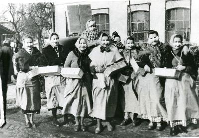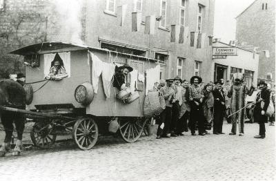 Eine Bensberger Zigeunergruppe 1954 beim Karnevalszug.