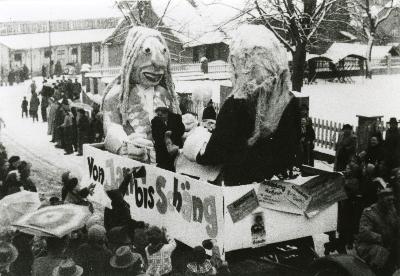Zwei Aufnahmen vom 1958er Umzug der von der Narrenzunft und ihren vielen Freunden veranstaltet wurde.